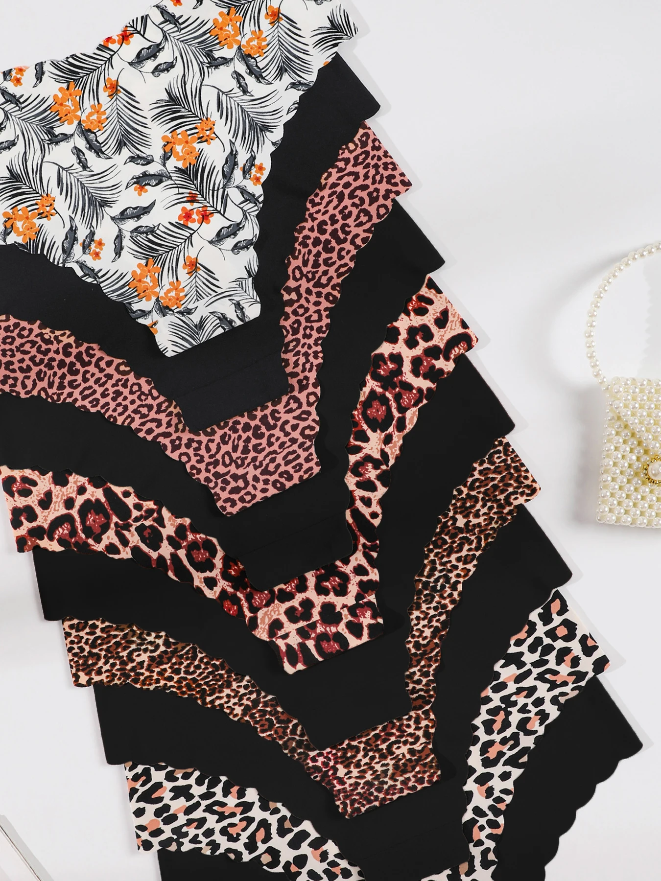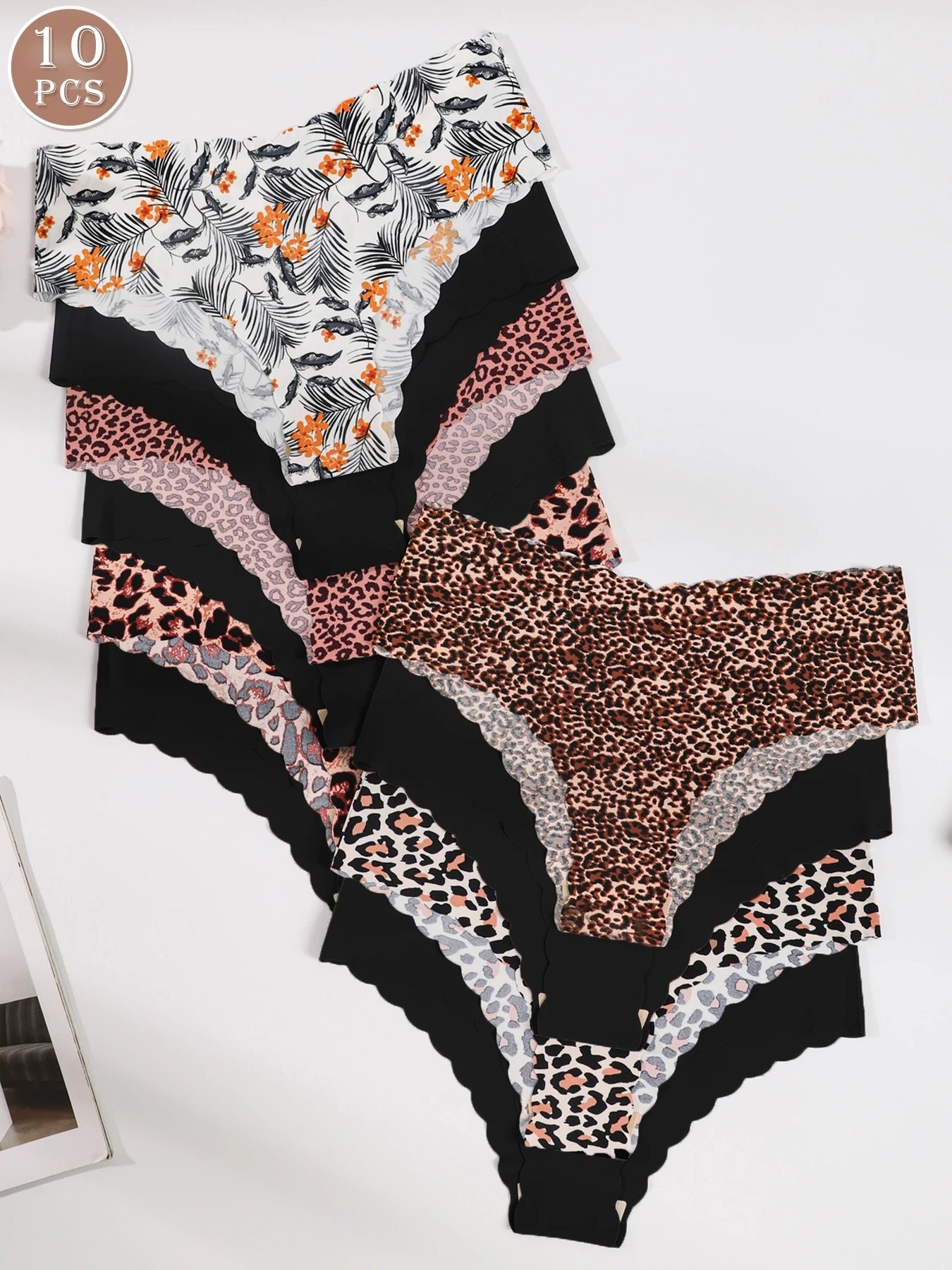 10pcs Women Seamless Wavy Edge Breathable Comfortable Soft Fabric Sexy Triangle Panties