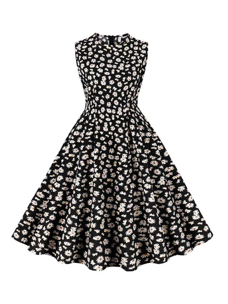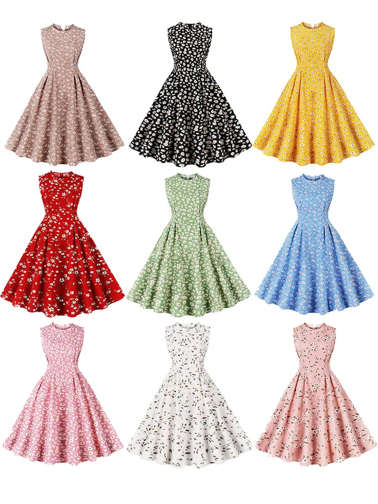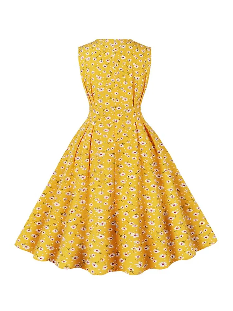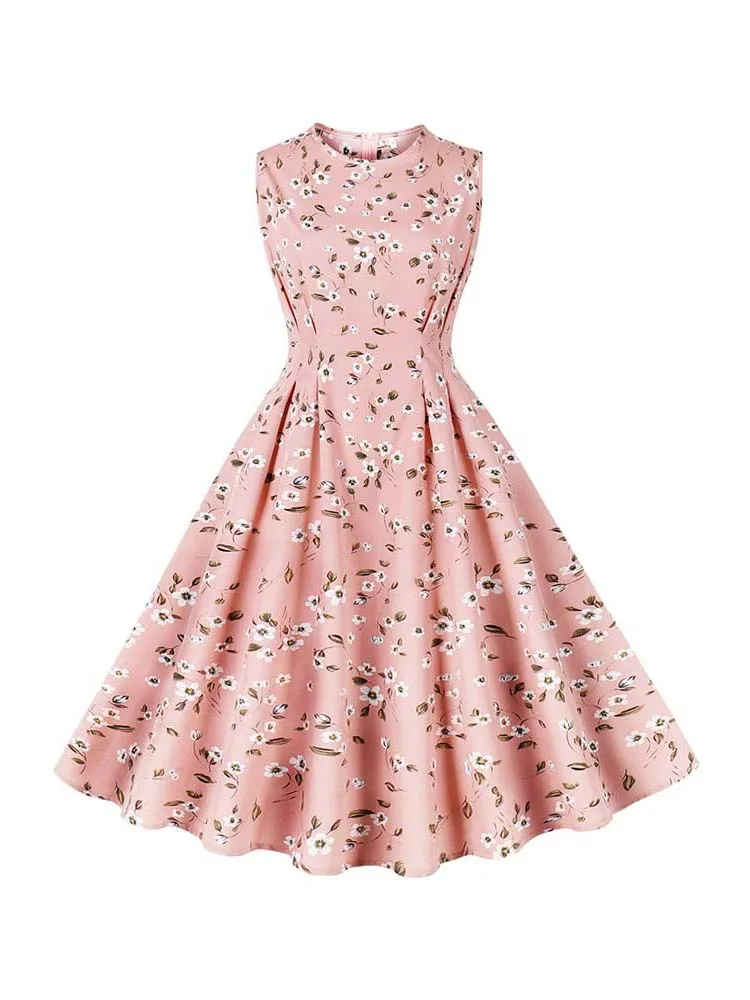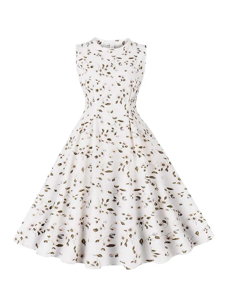 Floral Print Summer Dress Women Elegant Retro Sleeveless Vacation Beach Dress 50S Party Vestidos